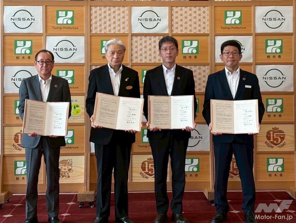 - 日産自動車、栃木日産自動車販売および日産プリンス栃木販売は、栃木県が主催するカーボンニュートラル実現に向けたイベント等において、EV展示や給電の実演等を行う際に協力し、「走る蓄電池」としての活用をPRする。
