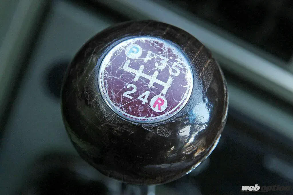 13B型とトルクグライド付き5速MTの走りを体感すべく試乗を開始。このミッション、操作は一般的な3ペダルMTそのものだが、面白いのはAT車と同じくPポジションがあることと、1速に入れてクラッチペダルを繋いでもエンストしないことだ。