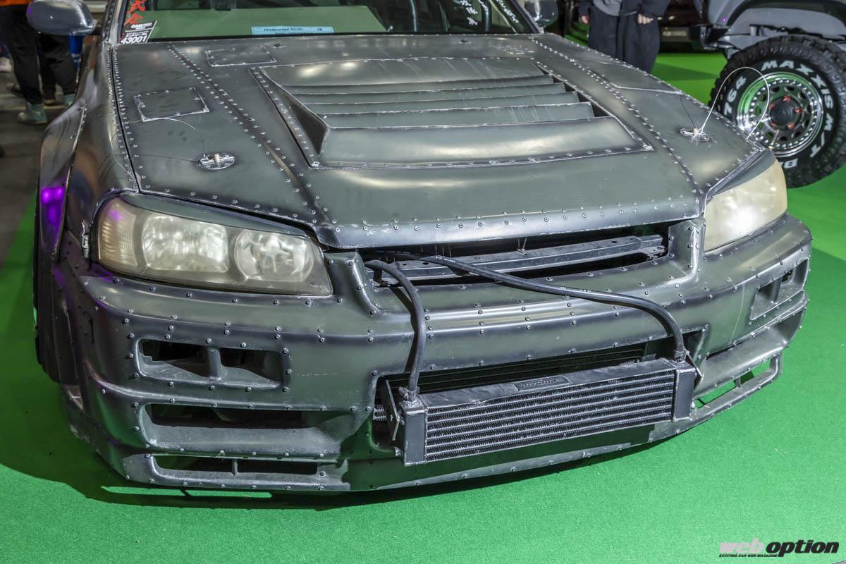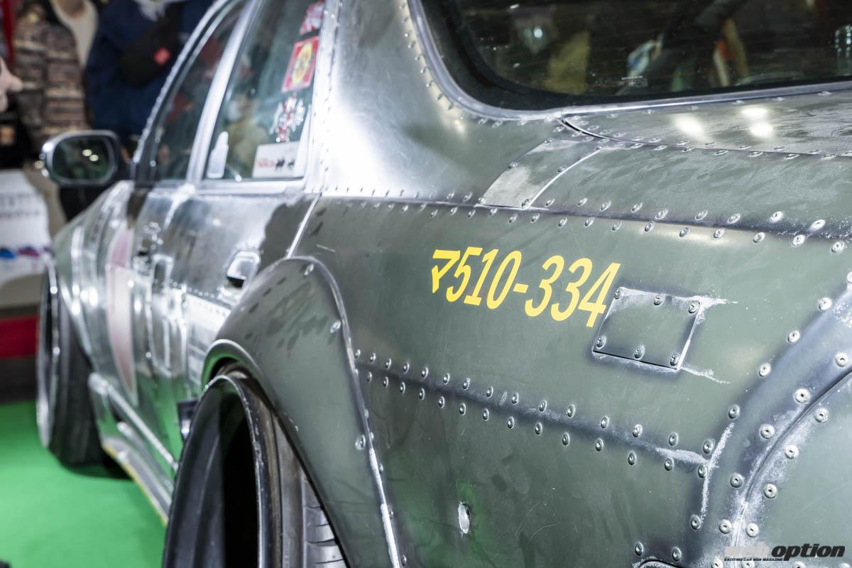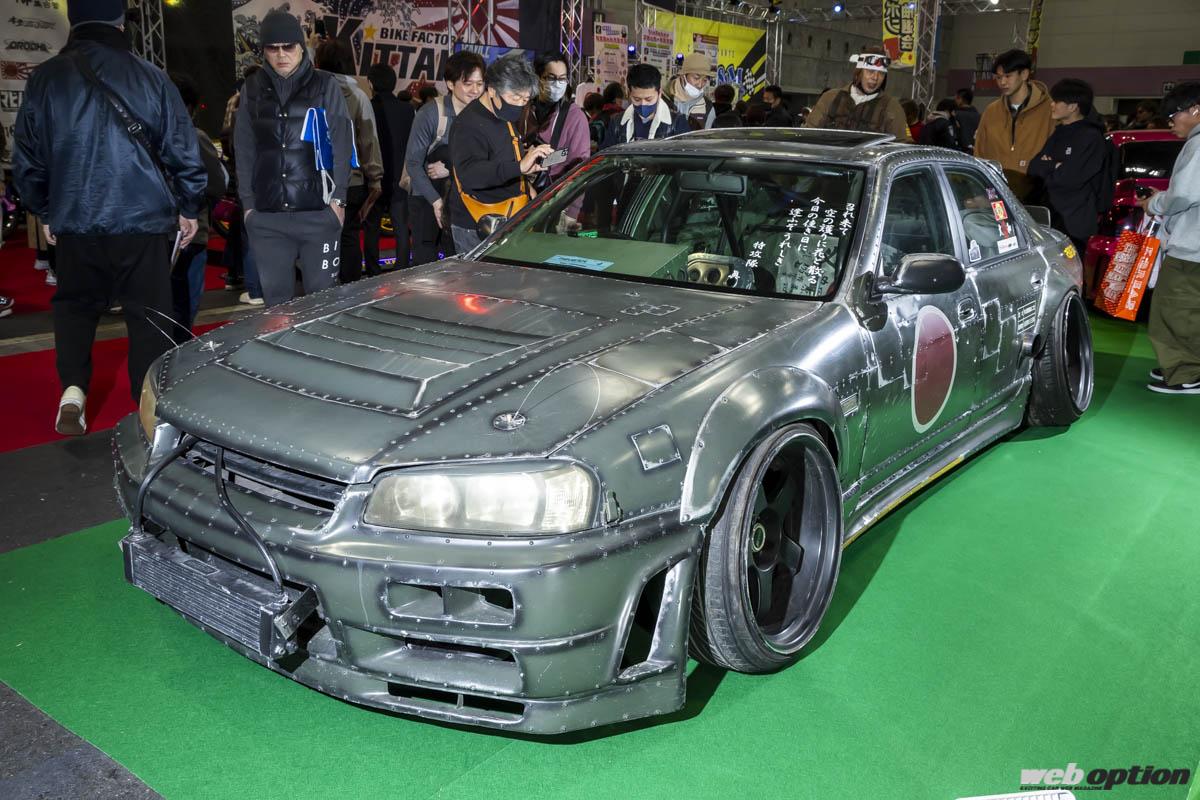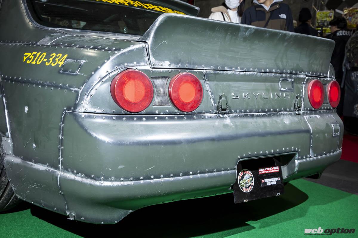 大阪オートメッセ2024に展示されたユーザー車両の中でも、特に注目を集めていたのがこのECR33型スカイライン。鹿児島県の“知覧特攻平和会館”に幼少期から通っていたというオーナーが、零戦をモチーフにDIYを駆使して仕上げた仰天ドリフトマシンだ。