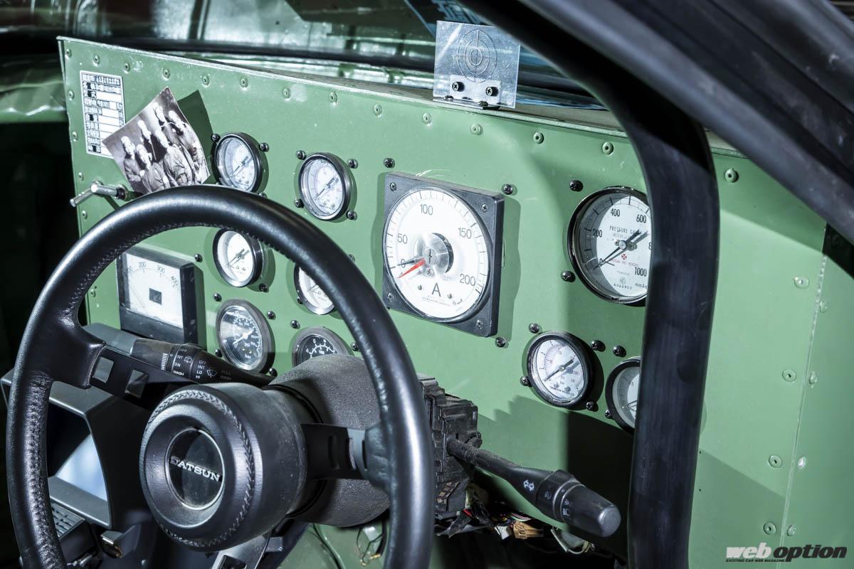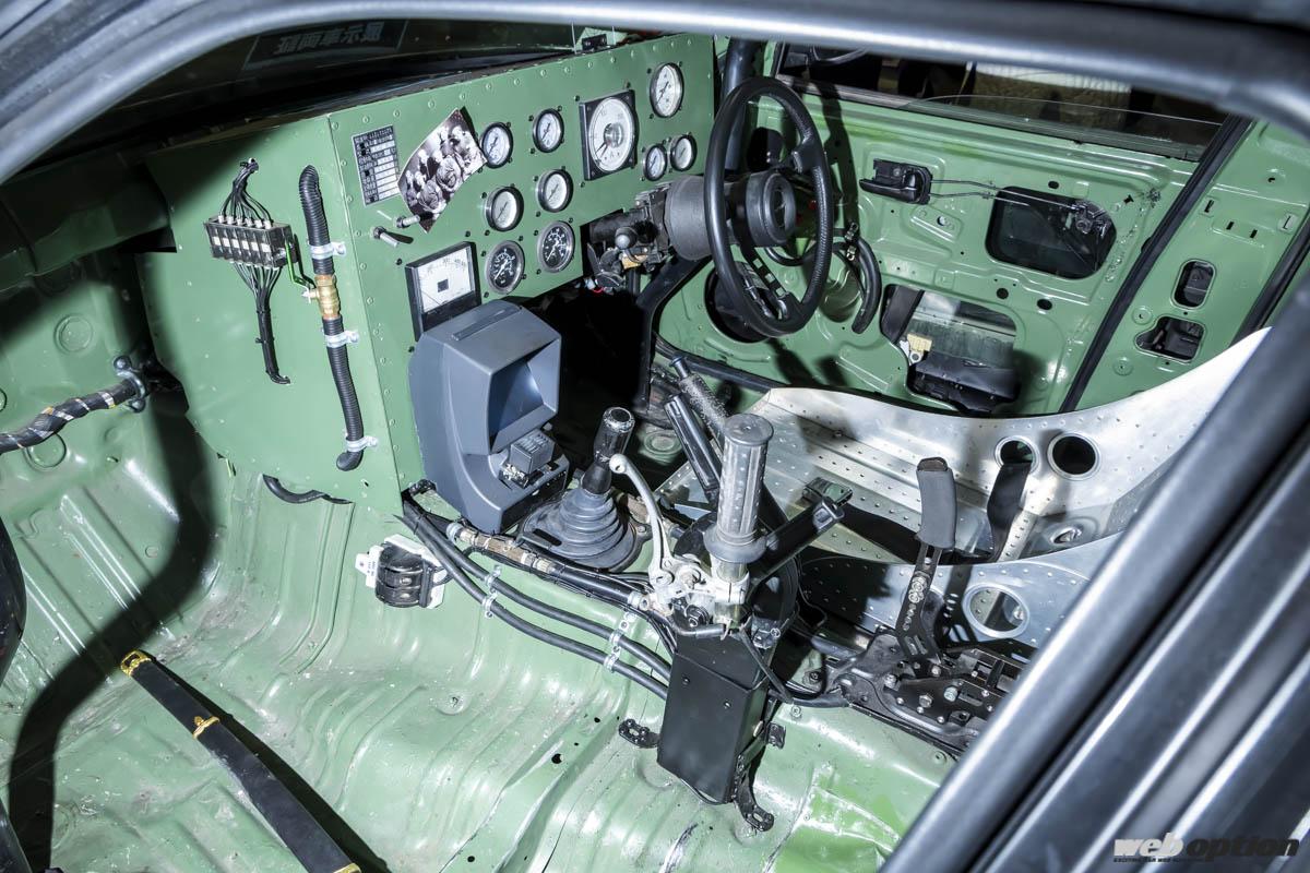 インテリアの作り込みも凄まじいレベル。インパネはアルミ板を駆使して零戦仕様へとリメイク。メーター類もクルマ用ではなく工業用へと変更しているが、配線処理をきっちり行なっているため全て問題なく作動する。
