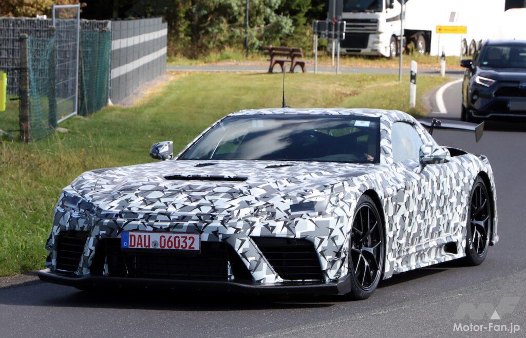 ニュルブルクリンク近郊の公道で目撃されたプロトタイプは、我々が想像していたよりも低く、そしてワイドに見える。白黒のマーカーポストは約90cmの高さで、LFRはそれよりわずかに高いだけだ。車線をほぼすべて占領し、後方を走るトヨタ「RAV4」と比べるとモンスター級の存在感を放っている。