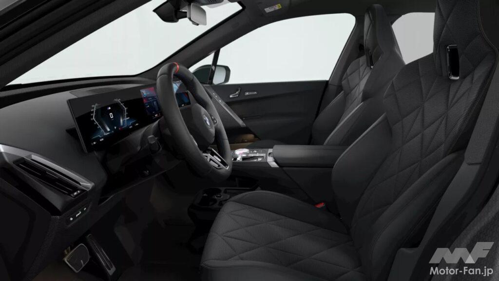 Mスポーツインテリアおよびシートマテリアル、新設計のMマルチファンクションシートは、ヴェガンザと上質なマイクロファイバー素材を用い、サイドサポートの強化によりホールド感を向上。iXの未来的なキャビンデザインに新たなスポーティな要素を加えている。