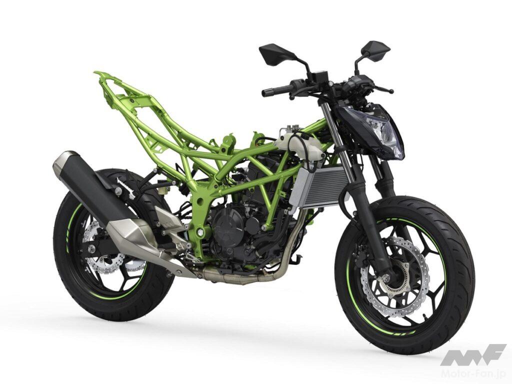 スタイリング面では、Z 系の「スーパーネイキッド(Supernaked)」のキャラクターを強調するため、シャープなライン、引き締まったタンク形状、裸骨的なトラスフレーム露出を活かした構成が採られている。
