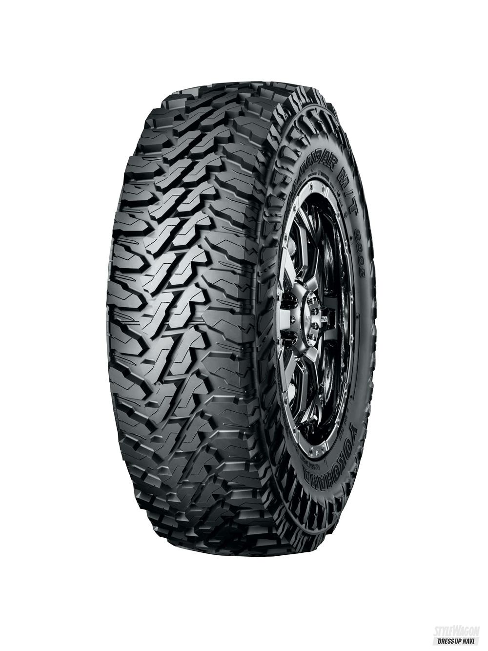 以前はSUV向けのサイズラインアップが中心だったが、最近はミニバンや軽自動車に最適なサイズも増えている。そんなオフ系タイヤは、大きく3タイプに分けられる。まずは「M/T(マッドテレーン)タイヤ」。最もオフ系らしい雰囲気を堪能できるデザインで、ブロックパターンのゴツゴツ感が特に強調されている。そもそも泥やぬかるみなどのオフロード走行を目的に開発されたタイヤで、悪路走破性の実力は抜群だ。一方、オフロードだけでなく舗装された道路での走行性も考慮されているのが「A/T(オールテレーン)タイヤ」。オールテレーンのオールは「すべて」、テレーンは「地形」のことを指しており、様々なシチュエーションで高い性能を発揮するタイヤだ。ノーマルタイヤと比べ、舗装路での静粛性は敵わないが、マッドテレーンよりは遥かに快適に走ることができる。そして「M/T」と「A/T」の中間に位置されるのが「R/T(ラギッドテレーン)タイヤ」。迫力あるブロックパターンにくわえ、「A/T」ほどでないが静粛性や街なかでの快適性に優れている。