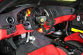 ブラック&レッドの2トーンでまとめられたインテリア。スピードメーターは340km/h、タコメーターは1万rpmまで目盛りが刻まれる。ミッションは2ペダルのF1マチックで、ステアリング奥のパドルでシフト操作。また、カーボン製センターコンソール&ドアトリムが採用されるなど軽量化の跡も見て取れる。