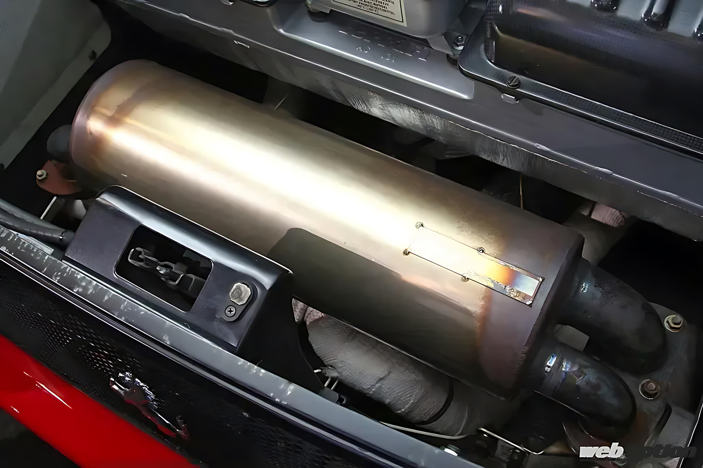 しかしオーナーいわく「走るためにあちこち手を入れてますけど、フェラーリはイジらないと乗れたもんじゃないですよ(笑)。自分でもフェンダーのツメ折りをしたり、リヤパネルを加工してホームセンターで買ってきた金網を張ってみたり。それと、走っているとどうしてもボディに傷が付くので、缶スプレーとタッチペンは手放せません」とのこと。