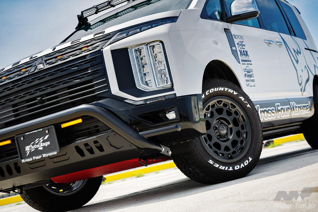 当モデルは、ロックガードリングが備わるのが最大の特徴。樹脂製の、やや厚みのあるリングがボルトで留まっているのだが、コレは石場等の悪路走行時にリムが傷つくのを防いでくれる。そしてこのリング、素材からもわかる通り別体式。それゆえ、よりリアルなビードロックスタイルになっていることも見逃せない。デザインはスチールホイールをも連想させる武骨さで、タイヤをひと際大きく見せるスタイルも相まって、足元からタフさ、ラギッドさを強調する。