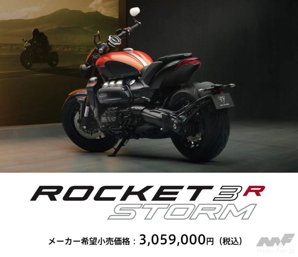 トライアンフモーターサイクルズジャパンは、期間中にROCKET 3 STORM R モニターキャンペーンに応募した方の中から抽選で1名に、1ヵ月間「ROCKET 3 STORM R」を無償で貸し出しするキャンペーンを実施する。