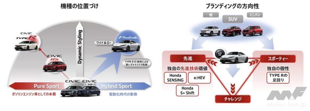 車幅はシビックタイプRが1890mm、プレリュードが1880mmである。車重はシビックタイプRの1430kgに対してプレリュードは1460kg、ハイブリッドながら1.5トンを切ってきた。