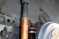 車高調はリーズナブルな価格設定が魅力のトラスト製ストリートスペックダンパーを装備。デモカーではロワブラケットを上級モデルのサーキットスペックダンパーのものに変更し、キャンバー調整幅を拡大している。