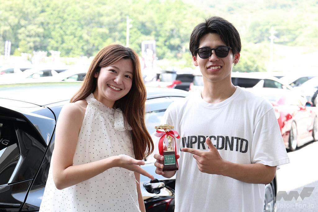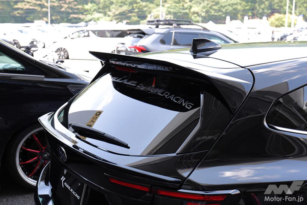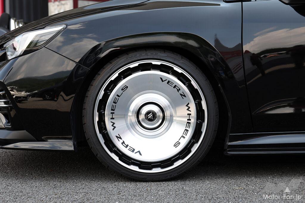 家族のクルマとしてお父さんが気に入り、手に入れたクールのコンプリートカーのレヴォーグ。「マフラーもうるさすぎず、良い音です」と話すのは、この日の代表者である息子のヤジさん。インパクトがあるのがホイール。超個性派『NEXSUS NEX01』を履くのだ。「ラリーのホイールにも見えますよね」と話していて……。確かにグラベル用ホイールの造形に似ているな〜。