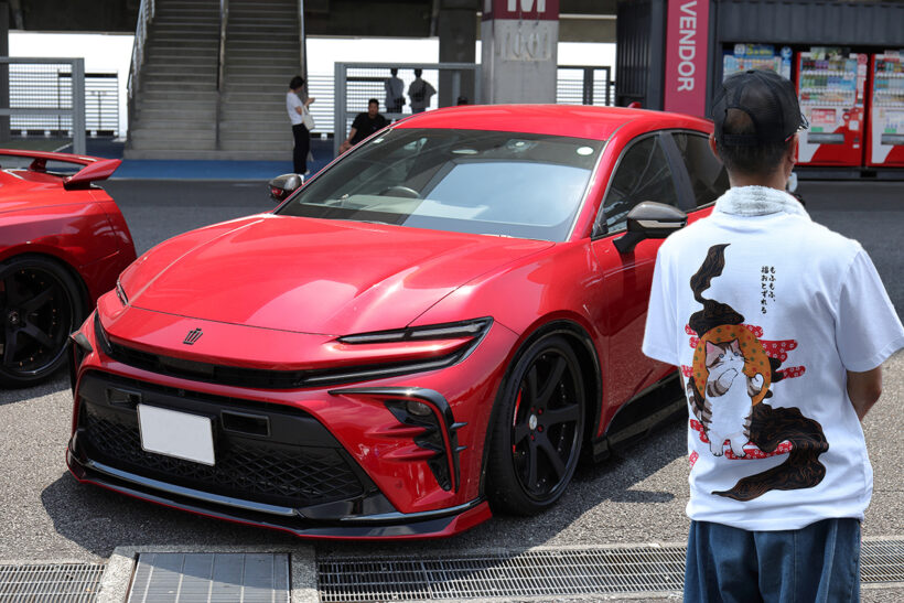 元々、新型Zを買いに行ったが……、代わりにクラウンスポーツを買って帰ってきた!? エアロを組むならクールで、と決めていたが、でもノーマルで乗るのは嫌。そこで最初は一時的にモデリスタ仕様だったという。その後エアロ、エアサス+フルアーム、ブレーキまで見直しこのカタチに! 実はその後、クール香川でZと出会い、「悪魔の囁きに乗ってしまった」のだそう。