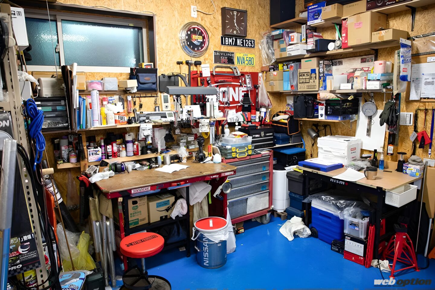 「自分でチューニングなどの作業はしないのですが、離れて暮らしている長男(一級整備士)がO/Hするミッションを持ち込んだり、溶接機を導入したりと、作業場としても活用することもあるんです。だから、日に日に機材も増えてきちゃっていますね」と続ける。