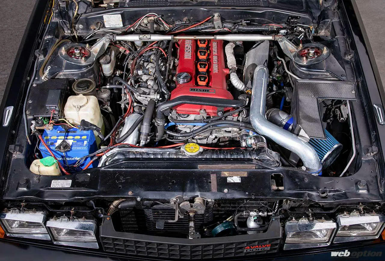 ここからは上原さんの長年の相棒であるS110型シルビアを見ていく。高校生の頃からS110に乗ると決め、ガゼールの2000EX-IIを欲していたというほど、その熱量は半端なかったという上原さん。「当時はチューバを吹いていたので、楽器が積めるハッチバック一択。そこで免許を取得して最初に購入したのが、S110シルビアのターボ ZSE-Xでした」。