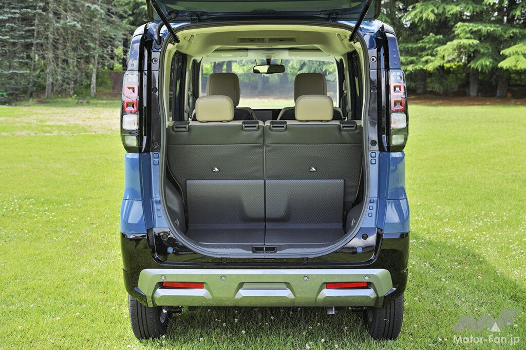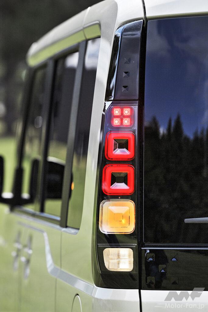デリカミニは〝やんちゃかわいい〟顔つきが受け、発売年には実質先代のeKシリーズから販売台数を約4倍に増やした成功作だ。今回の新型はキープコンセプトとしながらもワイドな前後スキッドプレートなどによりアクティブなムードを強調。Aピラーを立てて室内長を115㎜延長し、前後から見た際にワイド感を抱かせるようにBピラーをブラックアウト化した。新意匠のダイナミックシールドによる迫力ある顔つきだけでなく、厚みを増したリア下まわりなどタフさを醸し出している。