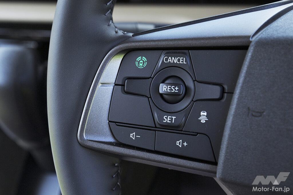 内装は12.3インチナビと7インチメーターを一体化させて先進性を強調するとともに、ダイヤル式ドライブモードセレクターなどがアクティブさを表現。スマホなしで作動する「Google」搭載インフォテイメントシステム、軽初の接近時アンロック&降車時オートロック、3Dマルチビューアラウンドモニターなどを設定。後席のフルフラット化を改善した。走りは静粛性や乗り心地の向上をはじめ、前後ダンパーにカヤバ製の「Prosmooth」を採用したのも注目点だ。中でも4WDは、足まわりの専用チューニングなどにより操縦安定性を向上させたという。