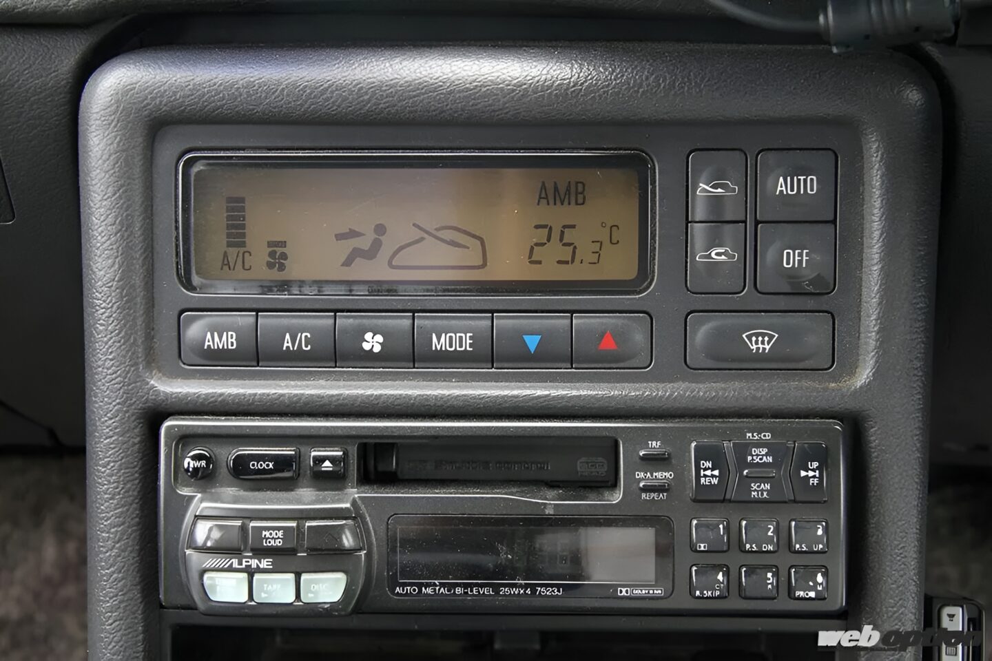 センターコンソールは上段にオートエアコンの操作パネル、下段にAM/FMチューナー付きカセットデッキが備わる。オートクルーズを含め、XE/Sは当時のテンハチクラスとして装備が充実してたと言っていい。