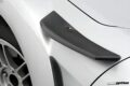 ルーフやトランクフードは、さりげなくドライカーボン製に交換。フロントフェンダーに装着されるフェンダーフィンは、フロントのダウンフォースを高める空力パーツだ。