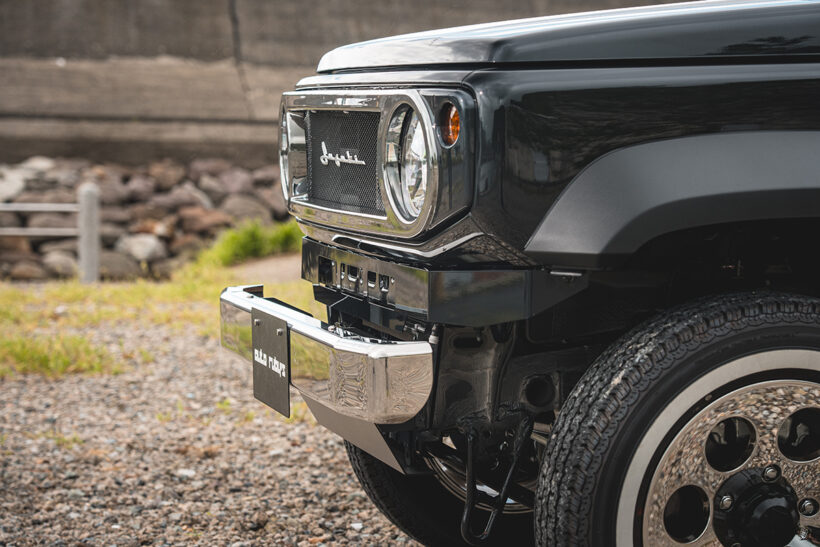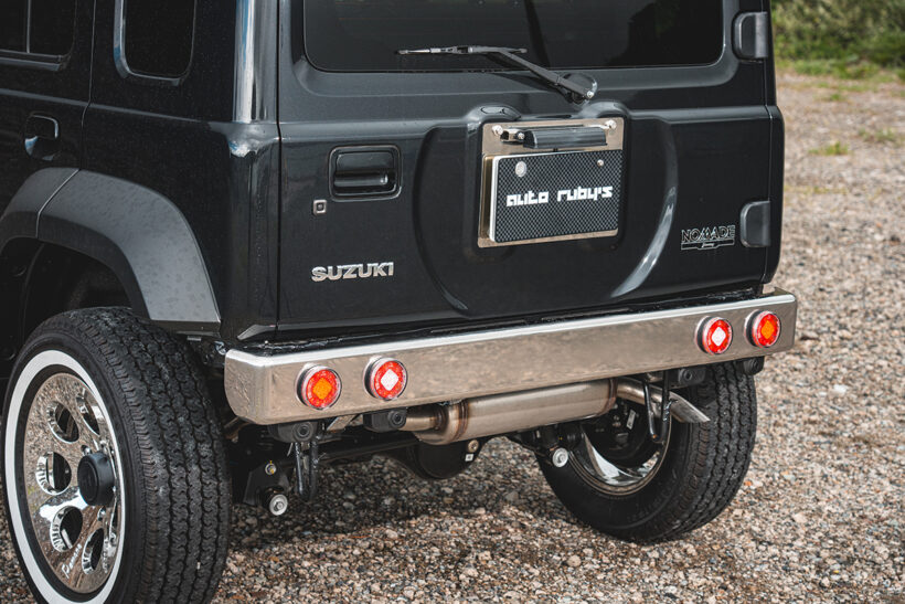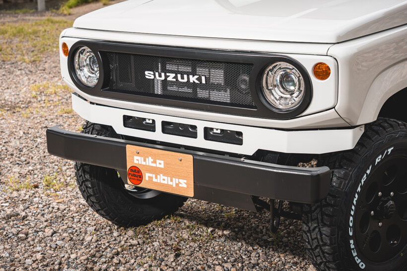アイテム(カスタム) グリル下のエプロンがユニーク! ランクル70初期をオマージュした新『ジムニーノマド』が爆誕!?【写真・2枚目】 バンパーは純正位置より下げただけでなく、ノマド/シエラで20〜30㎜、ジムニーで50㎜前方に出ている。グリルガード扱いで車検は問題なしだ。 ステンレス素材のフロントバンパーと統一感を出すために、リアもステンレス製のオールドスクルールバンパーをセット。ショートタイプで軽快な印象に刷新。 ■アイコニック70フロントバンパー(ステンレス) 12万1000円 ■オールドスクールリアバンパー丸型テール(LEDセット) 12万8700円 ■スズスポグリルクロームタイプ 11万2200円 ■背面タイヤレスナンバー移動レス(ステンレス) 3万3670円 ■1.5インチリフトアップコイルスプリング 4万3065円 ■AXR RAMONE2(スパッタクローム・16×6.0J-5) 4万700円 /1本 リアにスペアタイヤを背負っていると全体にイメージが重くなるため、背面タイヤレス仕様ナンバー移設キットの装着で、すっきりしたスタイルに。 足元にはオートルビーズ・オリジナルのラモーン2を装着。こちらもバンパーに合わせてスパッタクロームカラーを選択。サイズは16×6.0J−5。 ジムニーは柔らかなアイボリーのボディをブラックで締めるモノトーン仕立て。車高はオリジナルの1インチアップスプリングをセット。乗り味はかなりいい。 ■アイコニック70フロントバンパー(スチール) 9万4600円 ■ステップリアバンパー(LEDセット) 9万4050円 ■スズスポグリル 6万6132円 ■背面タイヤレスナンバー移動レス 2万790円 ■1インチリフトアップコイルスプリング 3万9600円 ■AXR RAMONE2(16×5.5J +20) 3万6300円/1本 ジムニーはラプター塗装仕様。エプロン奥に防錆塗装を施すことでグリル部分の存在感がクッキリ。スズスポグリルは2トーン塗装で処理。 ちょっとしたルーフからの積み下ろしに重宝するステップリアバンパー。デザインは角型テールのオールドスクールバンパーとほぼ同じだ。 ジムニーに装着したホイールもラモーン2。マッドブラックの塗装は表面が少しざらついて見えるようにグレーを強めにオーダーしている。 新作バンパーはジムニー/シエラ/ノマドともに基本デザインは共通。 この画像の記事を読む