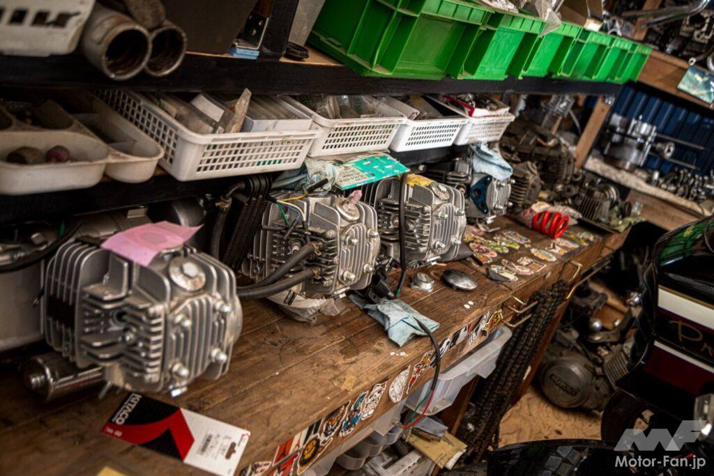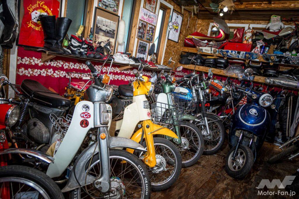 エイプで始まった4MINI趣味はその後、ダックスやモンキー、シャリィと幅を広げていった。現在メインにしているのはエイプとダックス、シャリィの3台でモンキーは製作中の個体が複数あるものの完成していない。それなのにスーパーカブにも目覚めてしまい、希少なスポーツカブやアンドン、初期C50、キャブ時代のリトルカブと揃えていった。スポーツカブこそノーマルだが、そのほかのカブは走りが楽しめるようにエンジンなどをチューニングしてある。