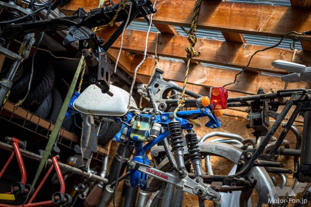 紹介しているガレージは固定資産税がかからないようにするため、基礎を打たずにブロックや単管パイプなどを用いて壁と屋根を立てかける構造。体力盛りの息子さんに手伝ってもらいながら、コツコツと建てたのだ。材料費も人件費もゼロだから、例え好きなだけ作り込んでも奥様から睨まれることもない。バイク好き・クルマ好きにとって大きなハードルになるのがガレージなどの環境と家族の理解。どちらかが欠けても趣味は完徹できないが、長澤さんの方法なら一石二鳥というわけだ。