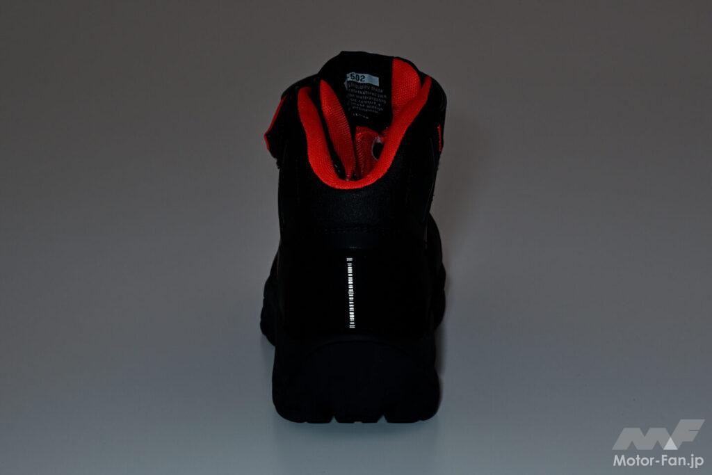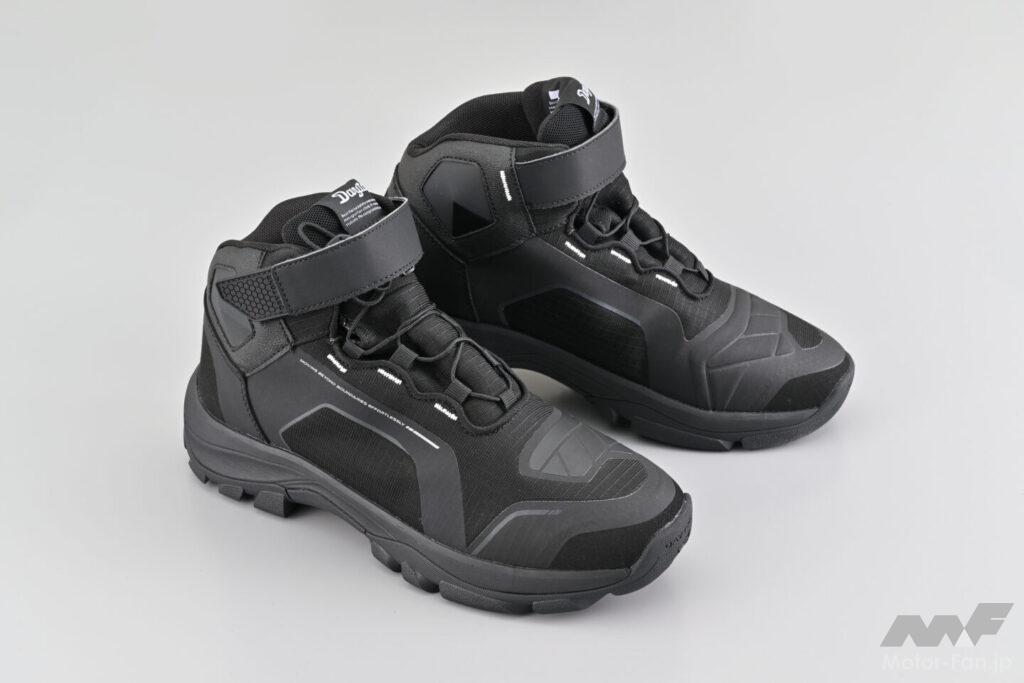 高い防水性能を備えた袋式構造を採用し、雨天でも水の浸入を抑止(※完全防水ではありません)。軽量EVAミッドソールが足にフィットし、長時間のライディングや歩行でも動きを妨げず、安定した履き心地を実現。