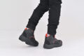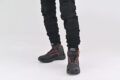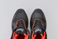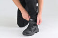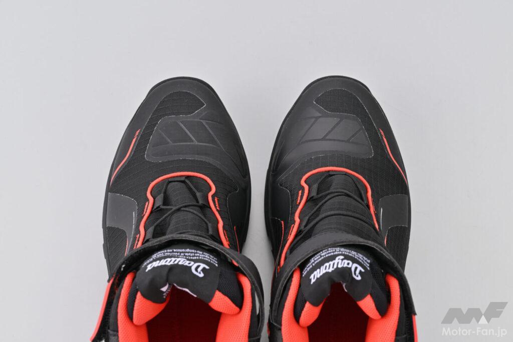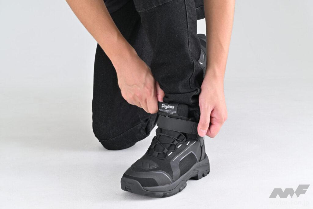 ひもとベルトの導入で、足首のホールド感も調整可能。余ったひもはシュータンの袋に収納OK。くるぶしにはハードプロテクターを内蔵し、つま先とヒールは内側補強と外側コーティングで足を保護。