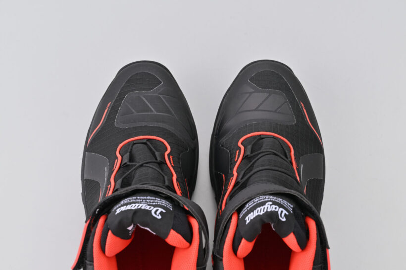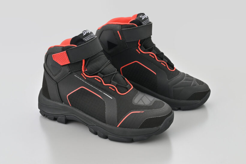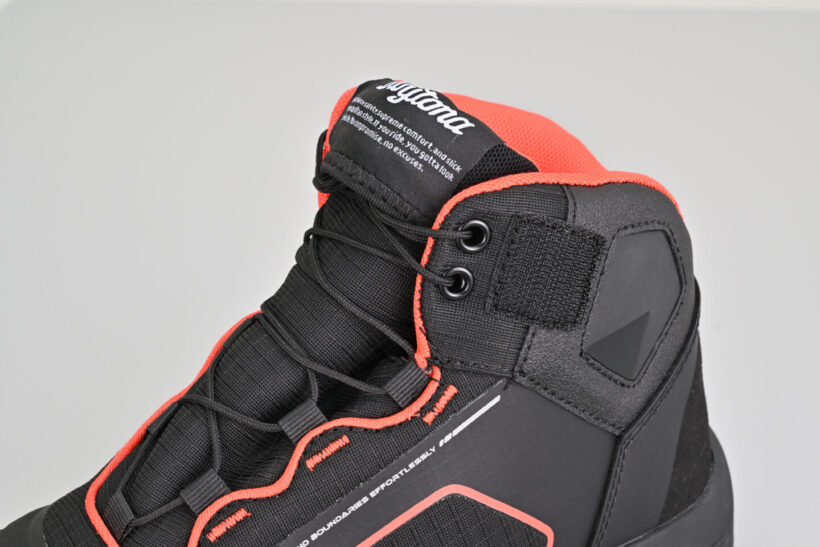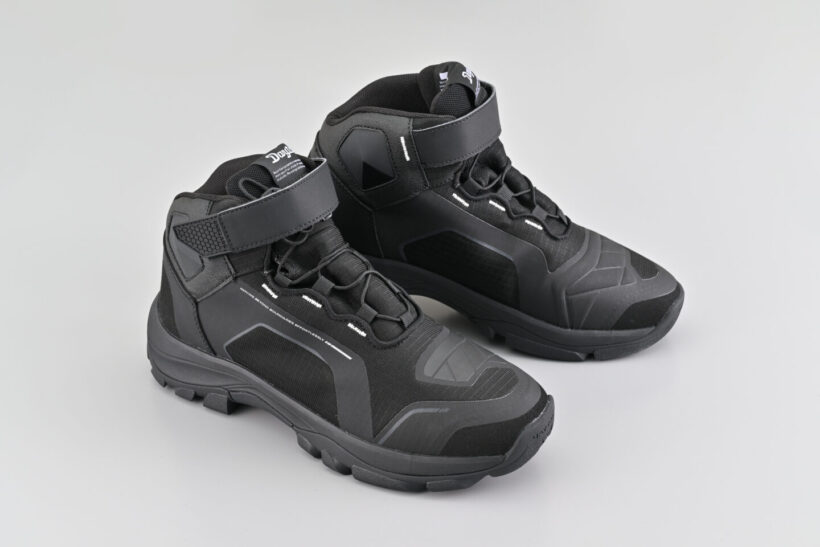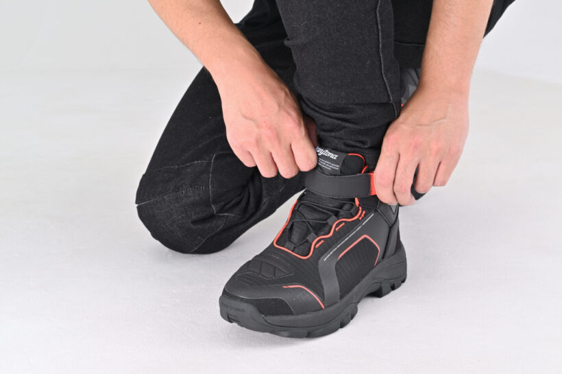バイクパーツ 軽量EVAのバイク用シューズ|歩行性・安全性・快適性・操作性・防水性の5つを網羅【デイトナ】【写真・30枚目】 シフトパットを内蔵するなど、快適なライディングができるバイク専用設計。 防水仕様で雨天でも水の浸入を抑止。シュータン(ベロ)まで防水フィルム入りで急な雨にも対応。 反射プリントにより夜間視認性を向上。 デイトナオリジナルソールは、滑りにくくトレッキング系の高グリップ形状でステップ向けに設 計。歩きやすくバイクも乗りやすいハイブリッドシューズ。 ライディング姿勢と歩きやすさを考慮したアンクルカット。 特殊インソールが足にフィットし、長時間のライディングや歩行でも足の動きに合わせて追求し安定した履き心地。 この画像の記事を読む