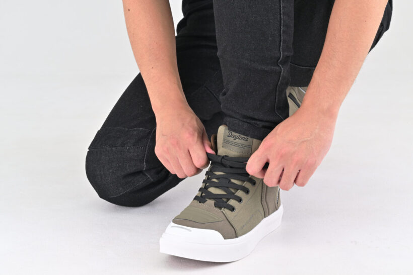 バイクパーツ カジュアルデザイン、しかも! 歩行性・安全性・快適性・操作性・防水性の5つを網羅したバイク用シューズ【デイトナ】【写真・15枚目】 オリーヴ サイドジップ仕様により、脱ぎ履きがスムーズ。わずらわしい着脱のストレスを軽減。 防水仕様で雨天でも水の浸入を防ぎます。シュータン(ベロ)まで防水フィルム入りで急な雨にも対応。 つま先とかかとの反射リフレクターで視認性アッ プ! ライディング姿勢と歩きやすさを考慮したアンクルカット。 この画像の記事を読む