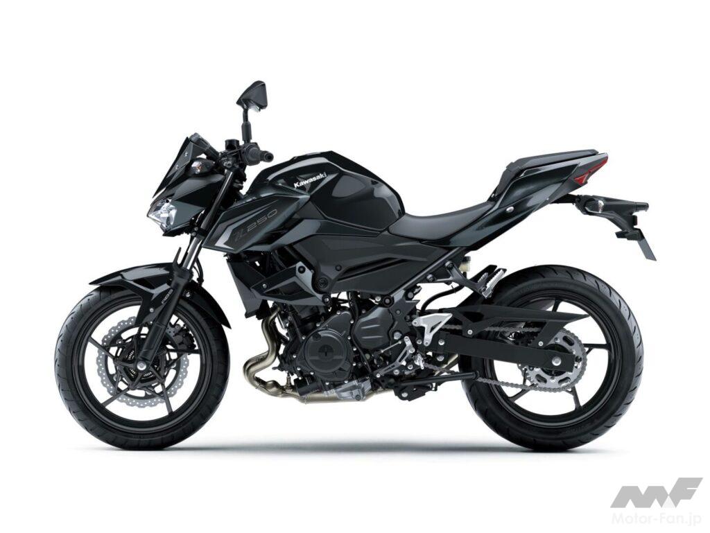 2026年モデルのZ250には、エボニー×メタリックカーボングレー(BK1)が設定される。ブラックを基調としたシックなカラーリングが、スーパーネイキッドのアグレッシブなスタイリングを引き立てる。
