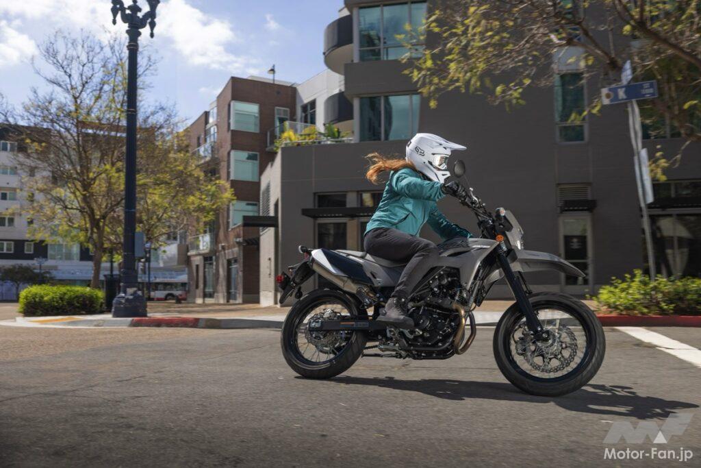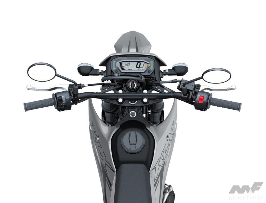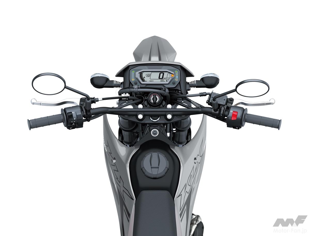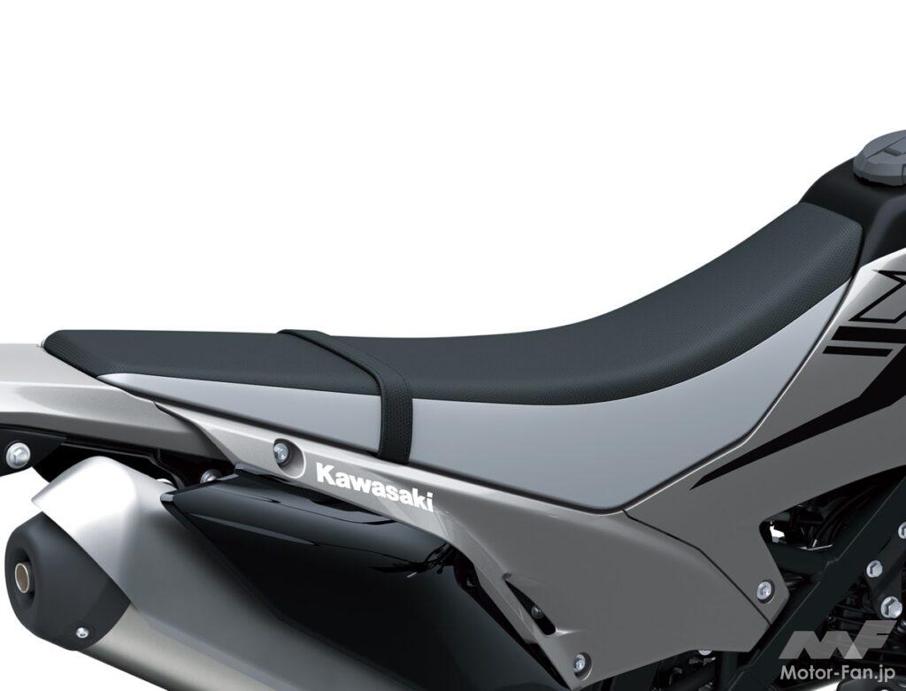 開発にあたっては、カワサキの最新のモトクロッサー「KX」をフィードバックし、コンペティションモデルに劣らないアグレッシブなスタイルを実現した。