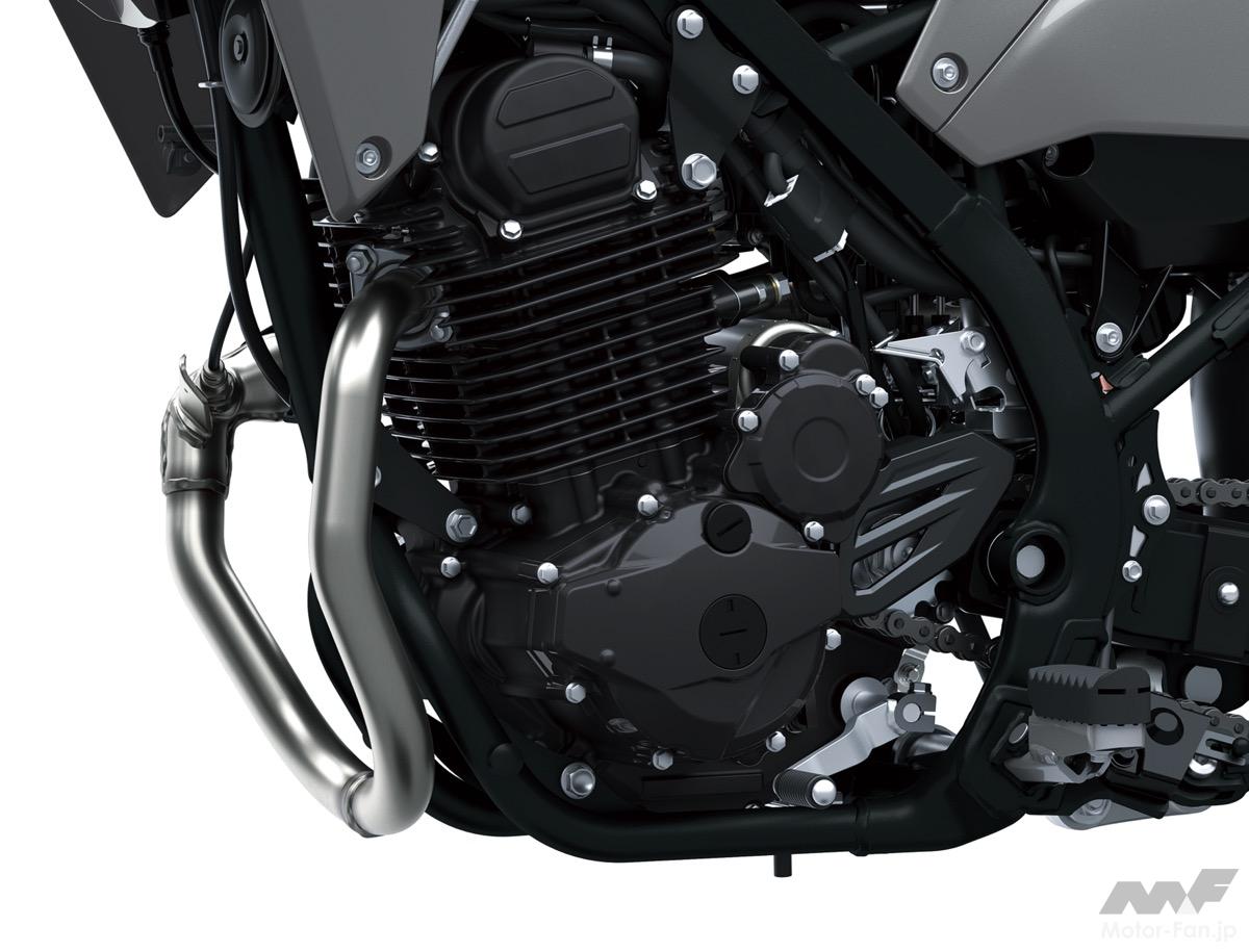 エンジンは、最高出力13kW(18ps)/8000rpm・最大トルク19Nm(1.9kgm)/6400rpmを発生する232cc空冷単気筒SOHCを採用。トランスミッションは6速MTとなっている。