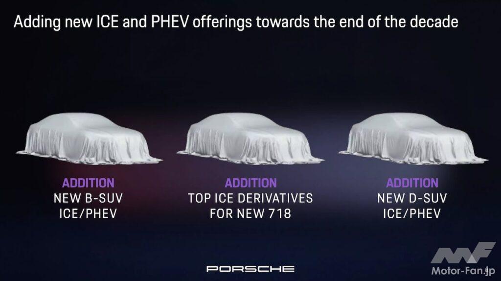 この計画の詳細は明らかにされていないが、ガソリンエンジンが搭載されるのは、ケイマンGT4、GT4 RS、そして718スパイダーの後継モデルと思われ、6気筒ガソリンエンジンを継続する可能性があると考えられる。しかし、通常の718モデルは、ポルシェが次世代スポーツカーを純粋にEVとして構想して以来開発を続けてきた、シングルモーターおよびデュアルモーターの電動ドライブトレインを採用する。そのため、内燃エンジンを楽しめるのは、ごく一部の購入者に限られるということだ。