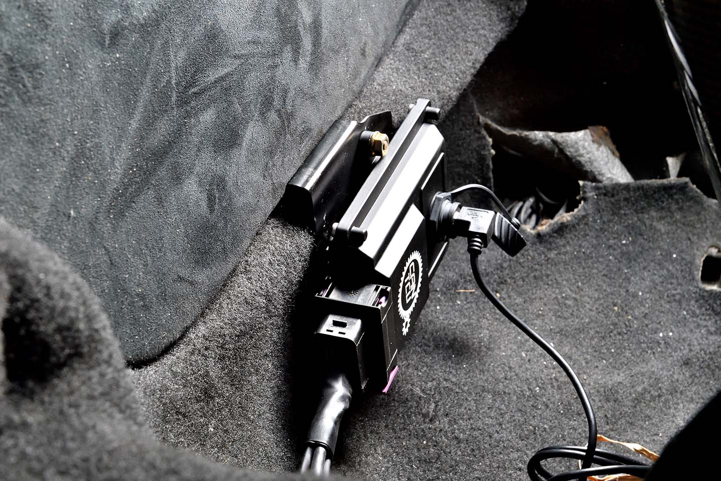 新たに移植されたM2用DCTは、「CAN TCU」と呼ばれる制御ユニットによってコントロール。快適かつダイレクトなシフトフィールを実現している。かつてはレース用ドグミッションを用いたパドルシフト構想もあったが、ストリートでの扱いやすさを考慮し、最終的にDCTを採用することとなった。