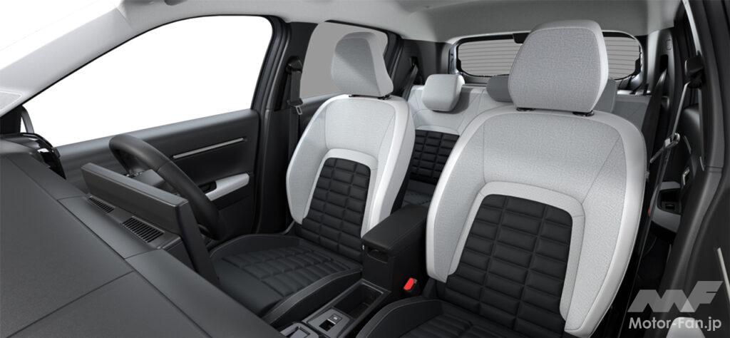 一方、エントリー版の「プラス」には、ダークグレーを基調としたファブリックのアドバンストコンフォートシートを採用。心地よく落ち着きのある空間を演出している。ダッシュボードにはブルーのラインをあしらい、穏やかな雰囲気に遊び心がさりげなく添えられている。