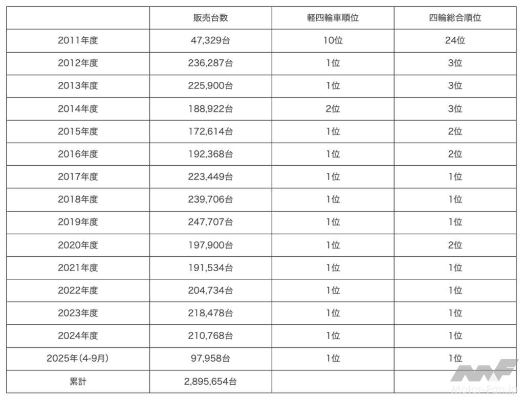 N-BOXシリーズ年度販売台数推移(自販連および全軽自協調べ)