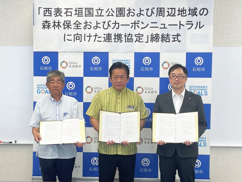 この協定は、西表石垣国立公園とその周辺地域の石垣市所有林に由来するJ-クレジットを、それらの森林経営を担う八重山森林組合が創出・販売するプロジェクトに於いて、森林保全およびカーボンニュートラルに向けた産官連携の取り組みを行なうものだ。
