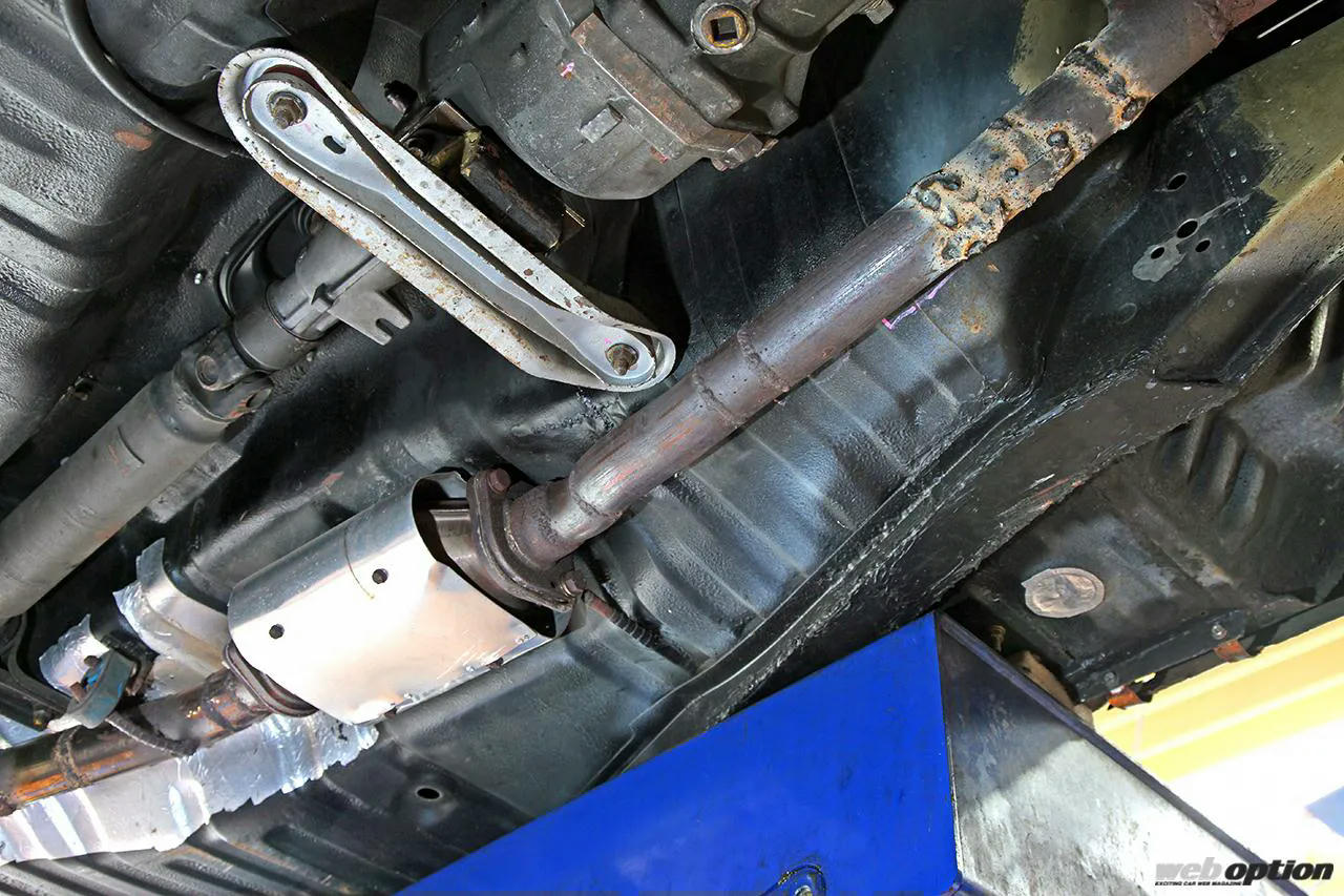 エンジンマウントをRB用に変更し、エンジン搭載位置を上げているのもポイントだ。