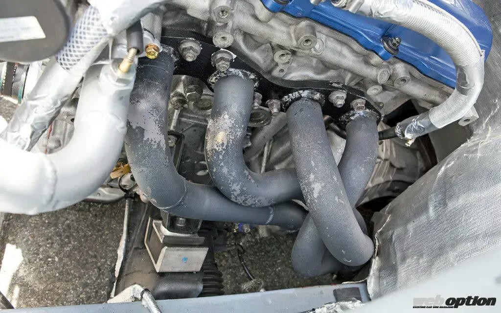 スロットルは東名パワードがかつて製品化していた45φの多連式を導入して吸入空気量を増加。コーナーでの立ち上がりや直線の伸びなどレースでの使い勝手の重視し、EXマニは4-1集合の等長タイプをチョイスする。