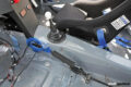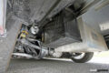 大型のラジエターはサイドフロー式の3層アルミタイプ。その真下に確認できるバーは剛性アップを目的としたもので、テンションロッドの付け根にダイレクトで接続される。