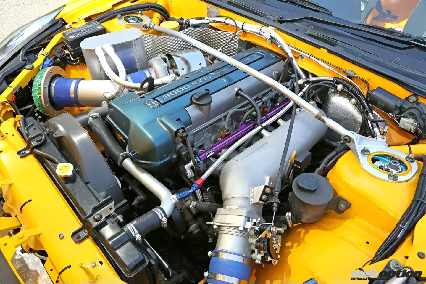 エンジン本体は、VVTi付きの後期型2JZ-GTEを換装。コストパフォーマンスを求めてエンジン本体には手を入れず、アダプトロニックのフルコンで可変バルタイまで含めて綿密に制御している。