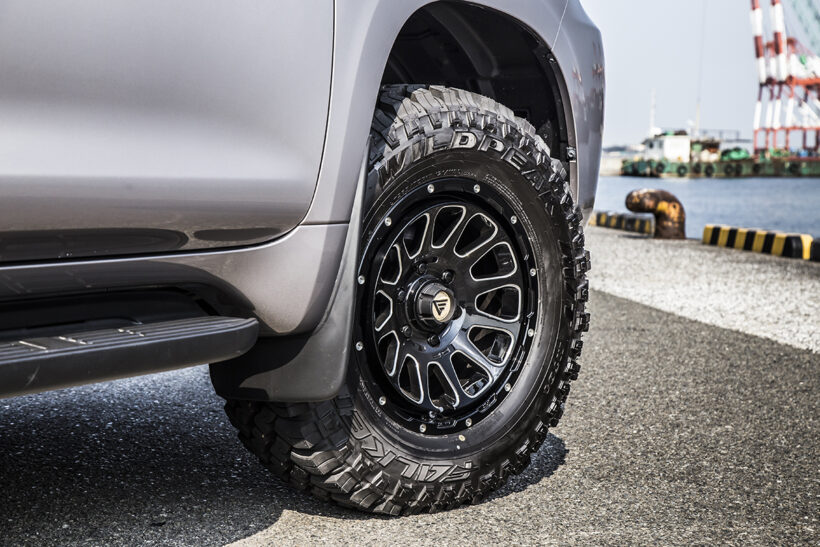 そこへ組み合わせるのはもちろん、ゴツゴツ系のオフロードタイヤだ。アレコレと銘柄を悩んだ結果、ファルケンが日本導入したばかりの「WILDPEAK(ワイルドピーク)」に。しかも男らしくマッドテレーン(M/T01)を選んだ。サイズはLT265/70R17。純正が265/65R17だから、27㎜ほど外径が大きくなるものの、フェンダーとのクリアランスは充分で、スピードメーターの誤差も車検には問題ないようだ。