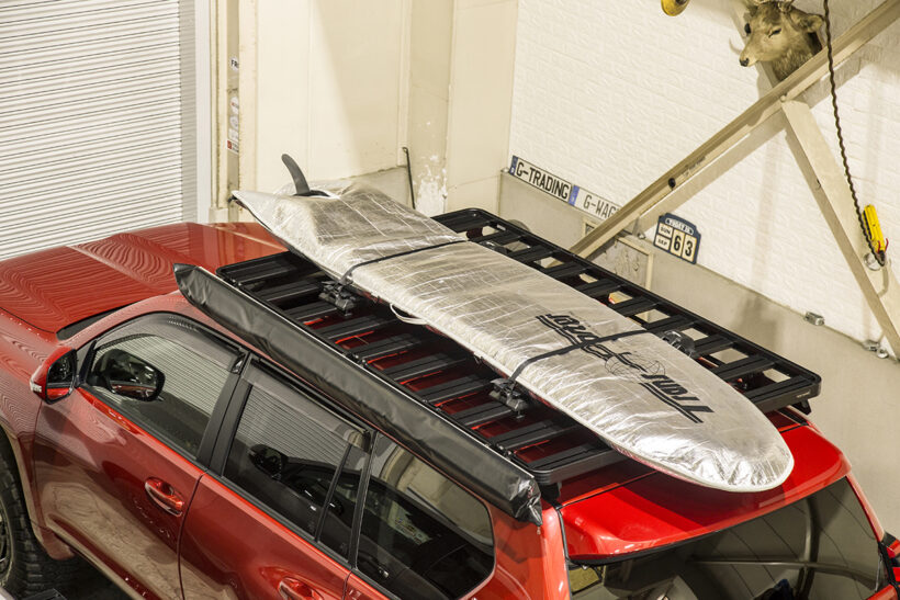 カスタム 北欧生まれのルーフボックスは、強靭で高品質で、そして何より使い勝手がいい!【ランクルプラド Up Style Project Vol.3】【写真・7枚目】 ロードバーの上に載せたのはPACKLINEのルーフボックス。ブランドの最高峰にあるNXシリーズのNXプレミアムXLをチョイスした。前部を軸にして後ろから開く構造は、三方向どこからでも荷物の出し入れがしやすい。空気抵抗軽減を意識した流麗なデザインは、クルマのフォルムとマッチしてドレスアップ要素も満点だ。 TOYOTA・LAND CRUISER PRADO Up Style Project Vol.3 今回はPACKLINEルーフボックスを取り付けることを前提に、純正ルーフレールに固定するロードバーを導入。見るからにゴツい造りにプロツールっぽさを感じさせる。 この画像の記事を読む