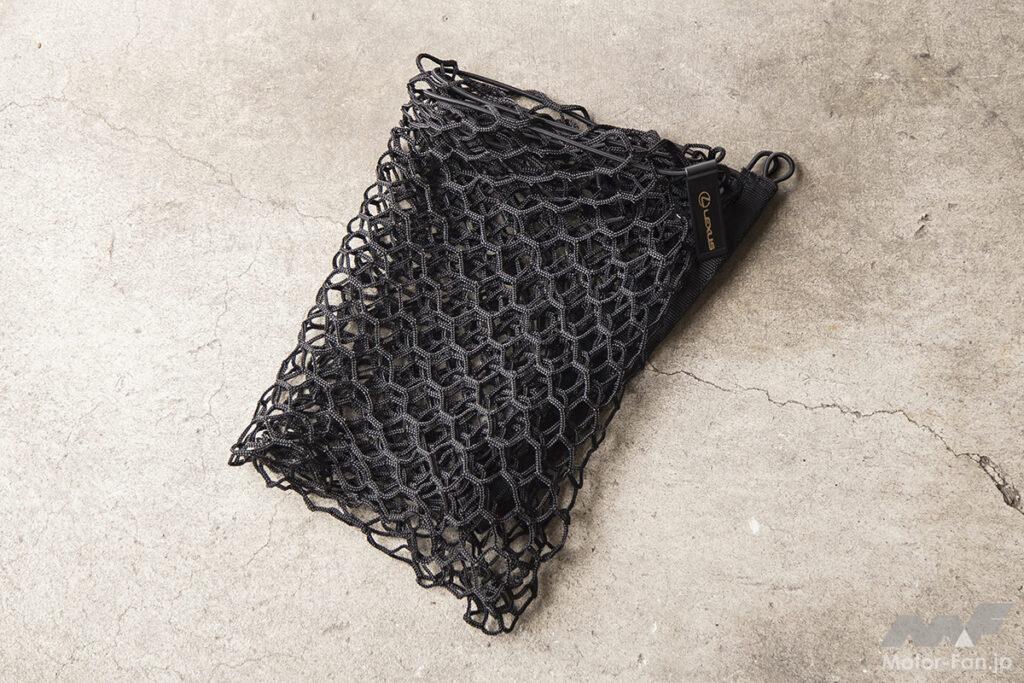 さらに150系プラドの北米仕様であるレクサスGX460に対して用意されるUSレクサス純正品に注目した。ここ日本では、そうしたパーツの数々が直輸入品として出回っているのだった。数あるものの中で取り入れたのは、ラゲッジスペースに敷くラゲッジマットや、荷物が暴れるのを防ぐカーゴネット。アウトドアで汚れた荷物だって気兼ねなく放り込める。ルーフボックス分の積載力を、先述したルーフラックへの括り付けと、このラゲッジルームを駆使して補ってみようと思った。