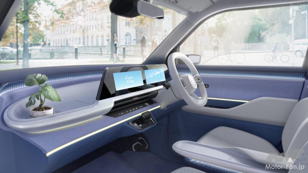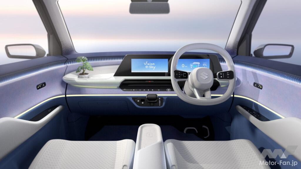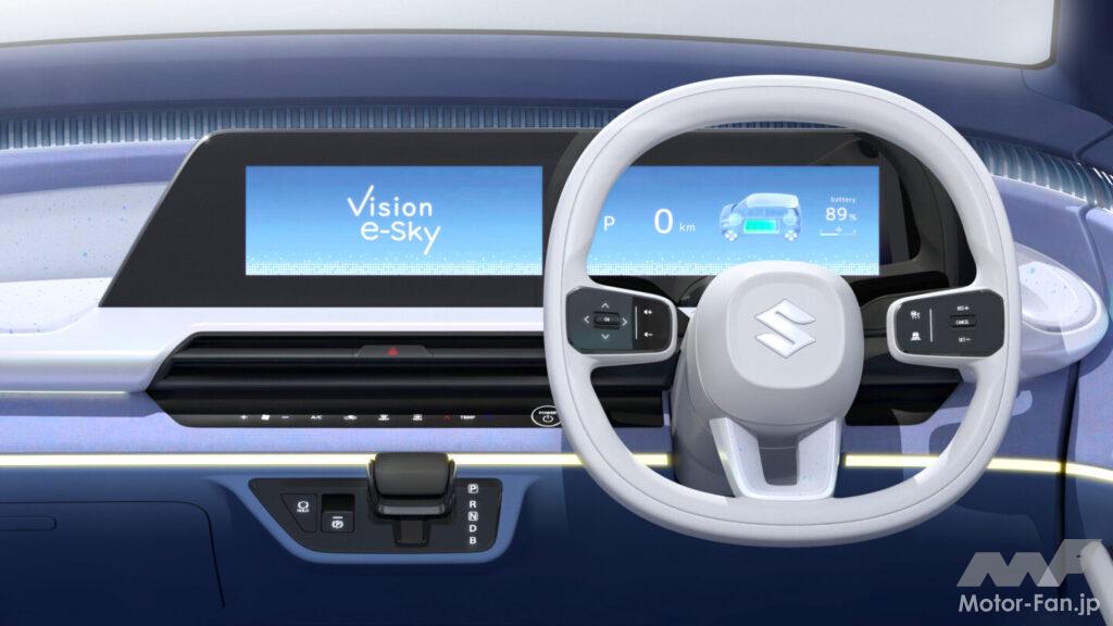 四輪分野で注目を集めるのは、軽乗用BEV「Vision e-Sky」だ 。全長3395mm×全幅1475mm×全高1625mmという軽自動車規格のボディに、航続距離270km以上のEVシステムを搭載。通勤や買い物、週末の小旅行など、生活の足として軽自動車を活用するユーザーの日常に寄り添う“ちょうど良い”EVとして、2026年度内の量産を目指すコンセプトモデルである。「ユニーク・スマート・ポジティブ」をテーマとしたデザインは、スズキらしい親しみやすさと前向きな印象を両立している。