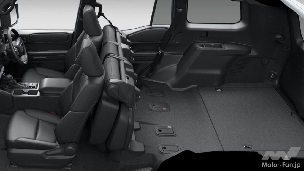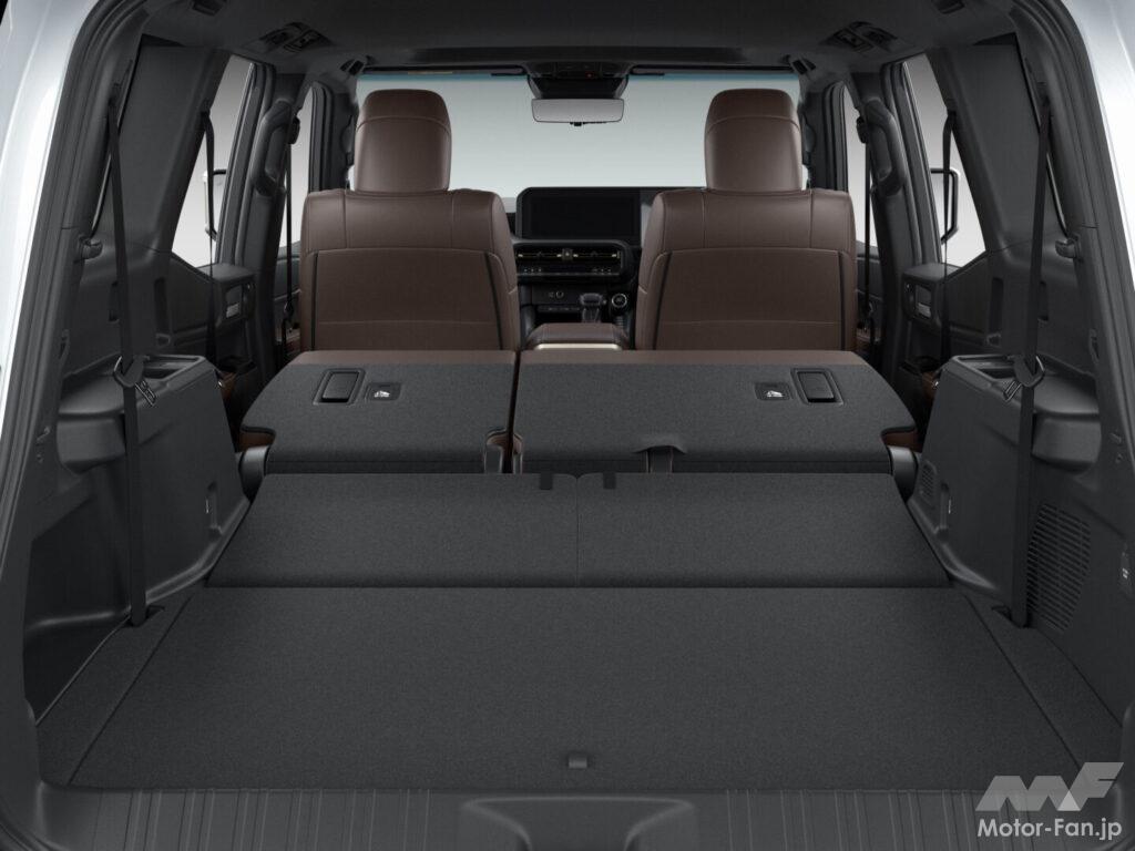 使い勝手の面でも大きく進化しています。全長や全幅は大柄ながら、見切りの良いボディと小回り性能により、都市部での取り回しもしやすい設計が成されています。荷室は広く、シートアレンジによってキャンプ用品やアウトドアギアを余裕を持って積載できます。