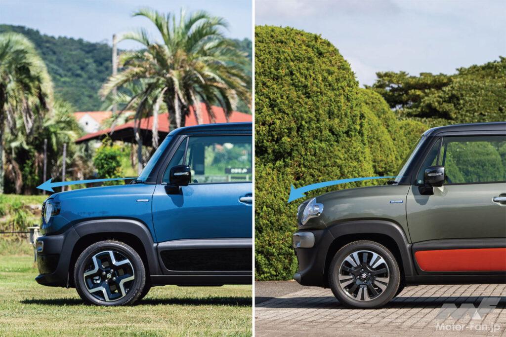 従来型はそのデザインが高く評価される一方で、「運転を楽にする機能」や「燃費の良さ」といった項目に対しては低評価に甘んじていた。そこで新型クロスビーはエンジンをK10C型1.0L3気筒ターボからZ12E型1.2L3気筒自然吸気に換装することで、燃費を25%向上。さらに衝突被害軽減ブレーキ「デュアルセンサーブレーキサポートII」や電動パーキングブレーキ、ステアリングヒーターの新採用による安全性や使い勝手の向上など、商品力が大幅に強化されている。