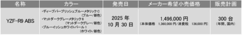ヤマハの新型ミドルスポーツYZF-R9 ABS、6つの特徴。|149.6万円