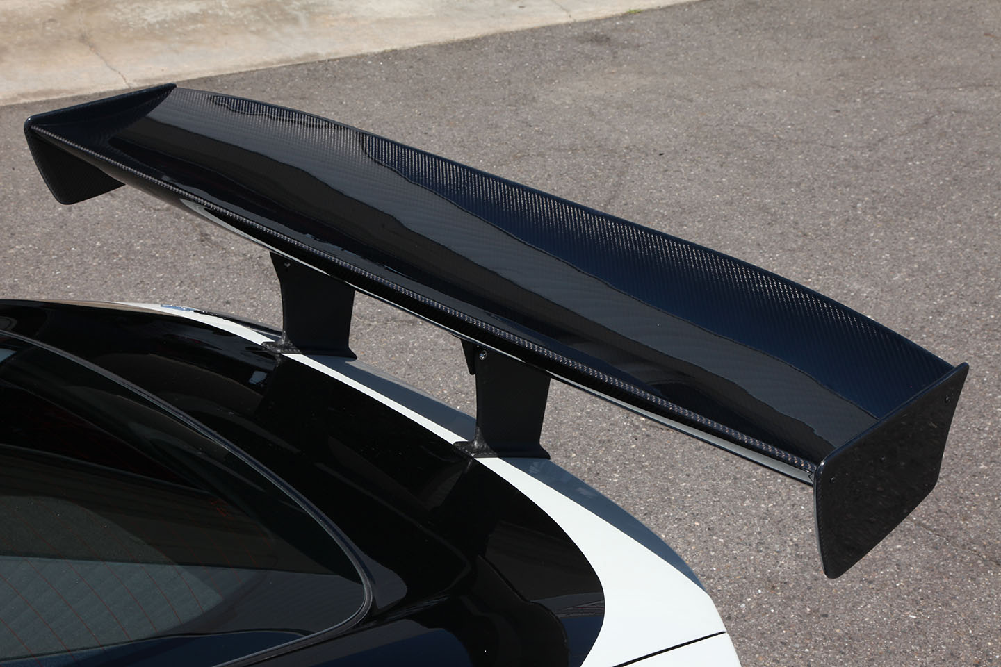 ホイールはアルミ鍛造1ピースのポテンザRW007。19インチでフロント9.5Jプラス27、リヤ10.5Jプラス35を履く。そこに組み合わされるのはフロント245/40、リヤ275/35サイズのポテンザRE-71RS。また、フロントフェンダーにはアウトレットダクト処理も施される。
