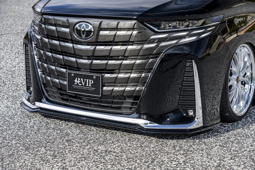 エイムゲインのバンパーエアロのブランド、純VIP。40アルファードに用意されたデザインは、アルファードにヴェルファイアなテイストを与えるためのフルバンパープログラムだと言うのである。